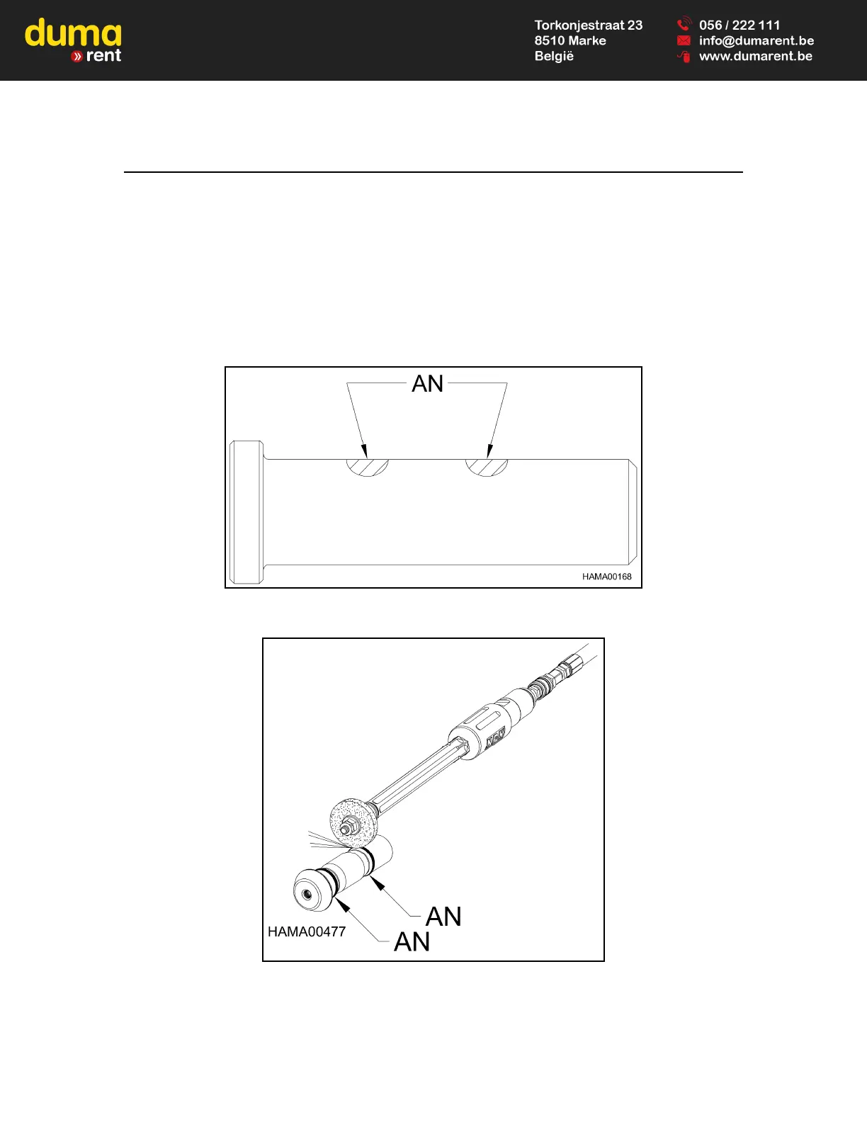 Deformation may occur on the retaining pin in the tool contact area (AN). If this area is