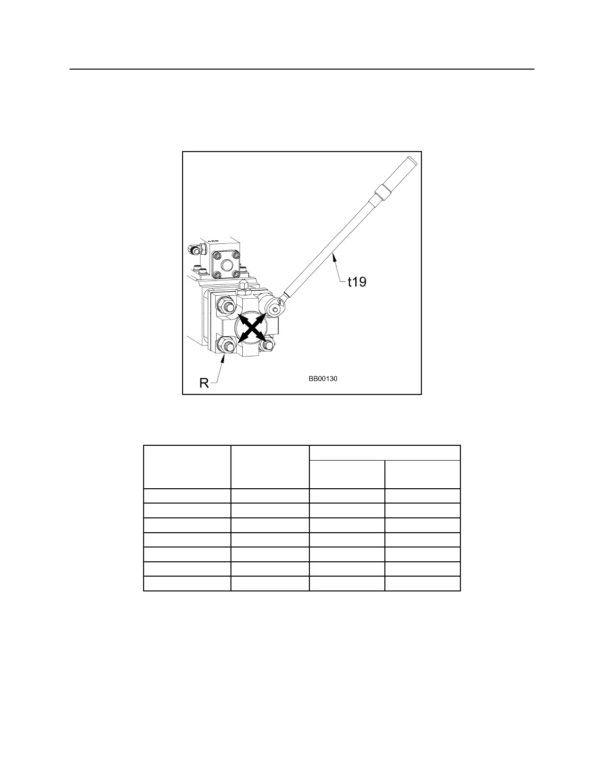 Tighten all top nuts (R) with a torque wrench (t19) to the recommended torque