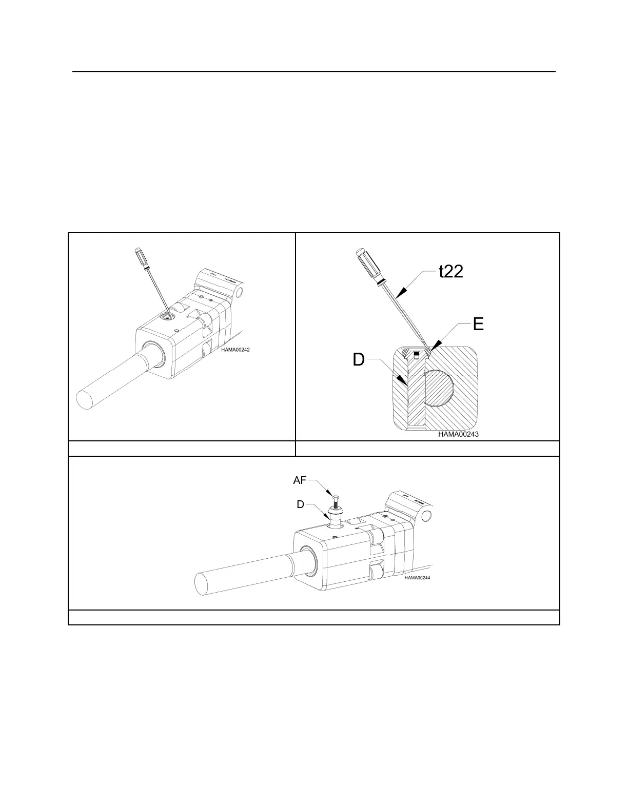 2. Screw an M12 bolt (AF) or cap screw into the retaining pin (D), as shown in Figure 3.