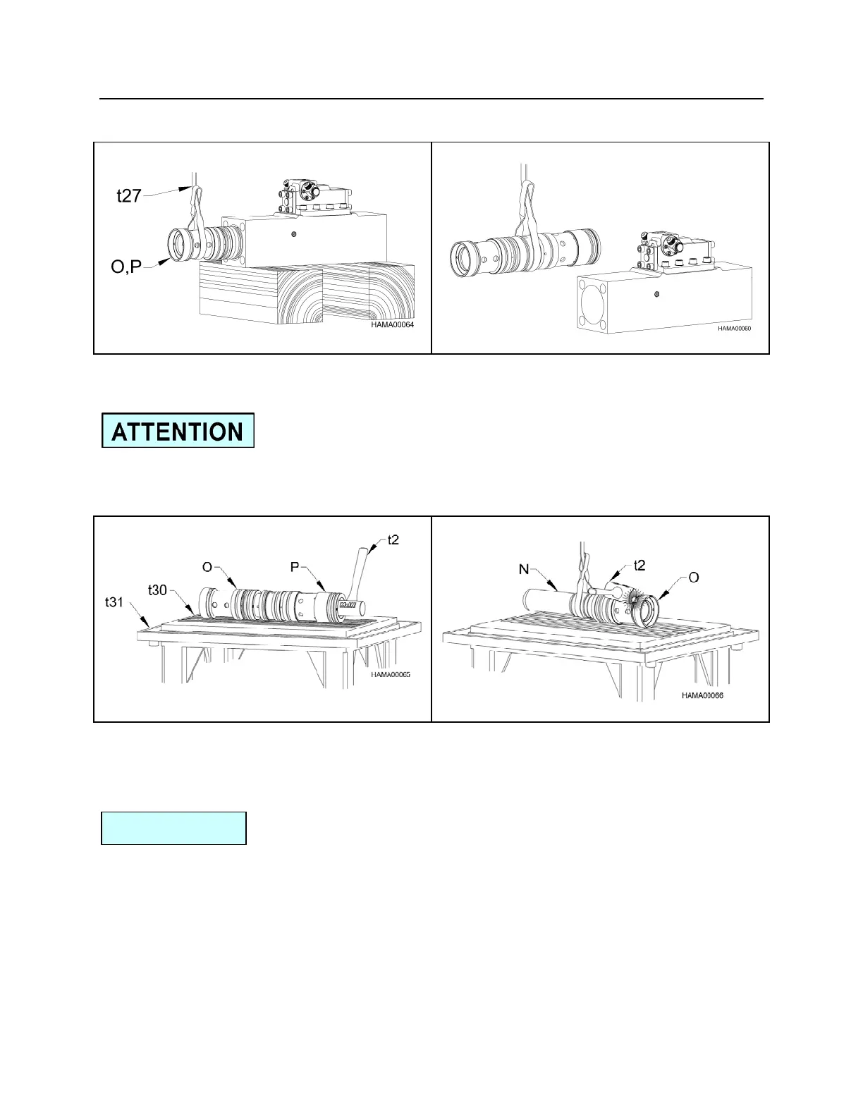 f. Keep the sleeves (O,P) level by adjusting tension on the sling (t27).
