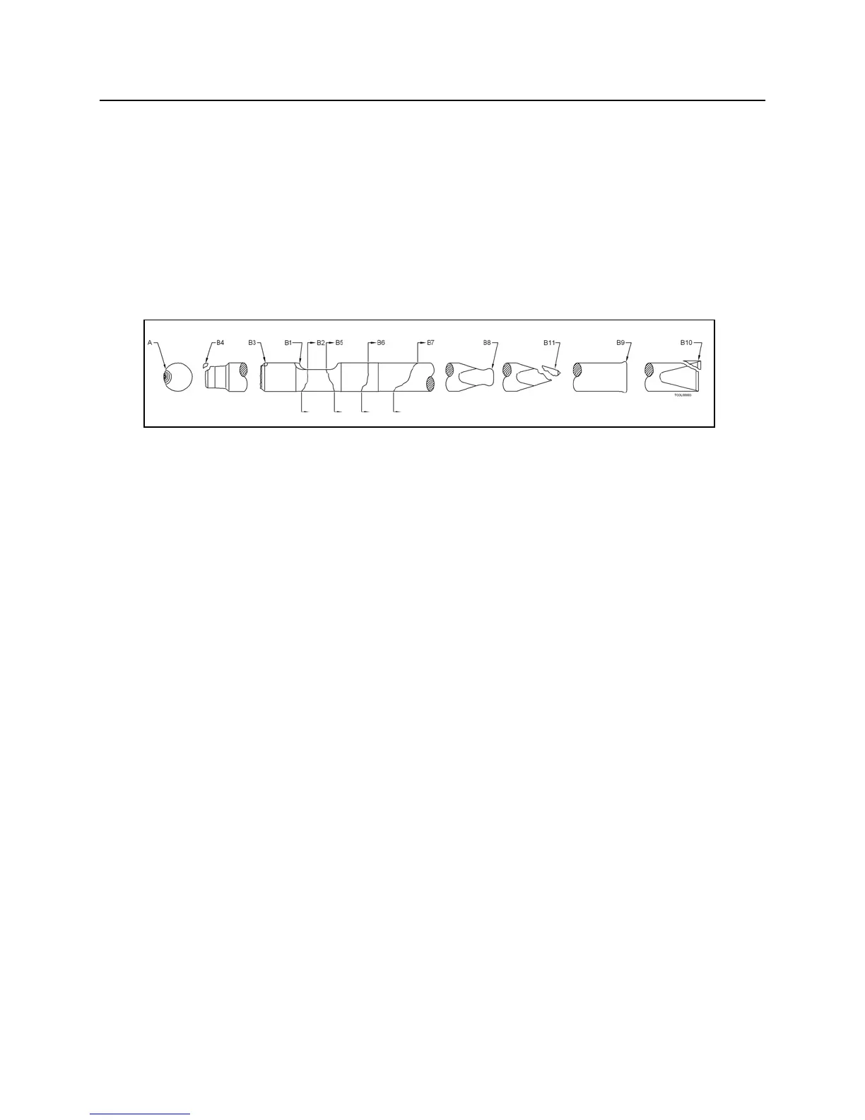 Tool failures as shown at locations B (see NPK Operators Manual for correct