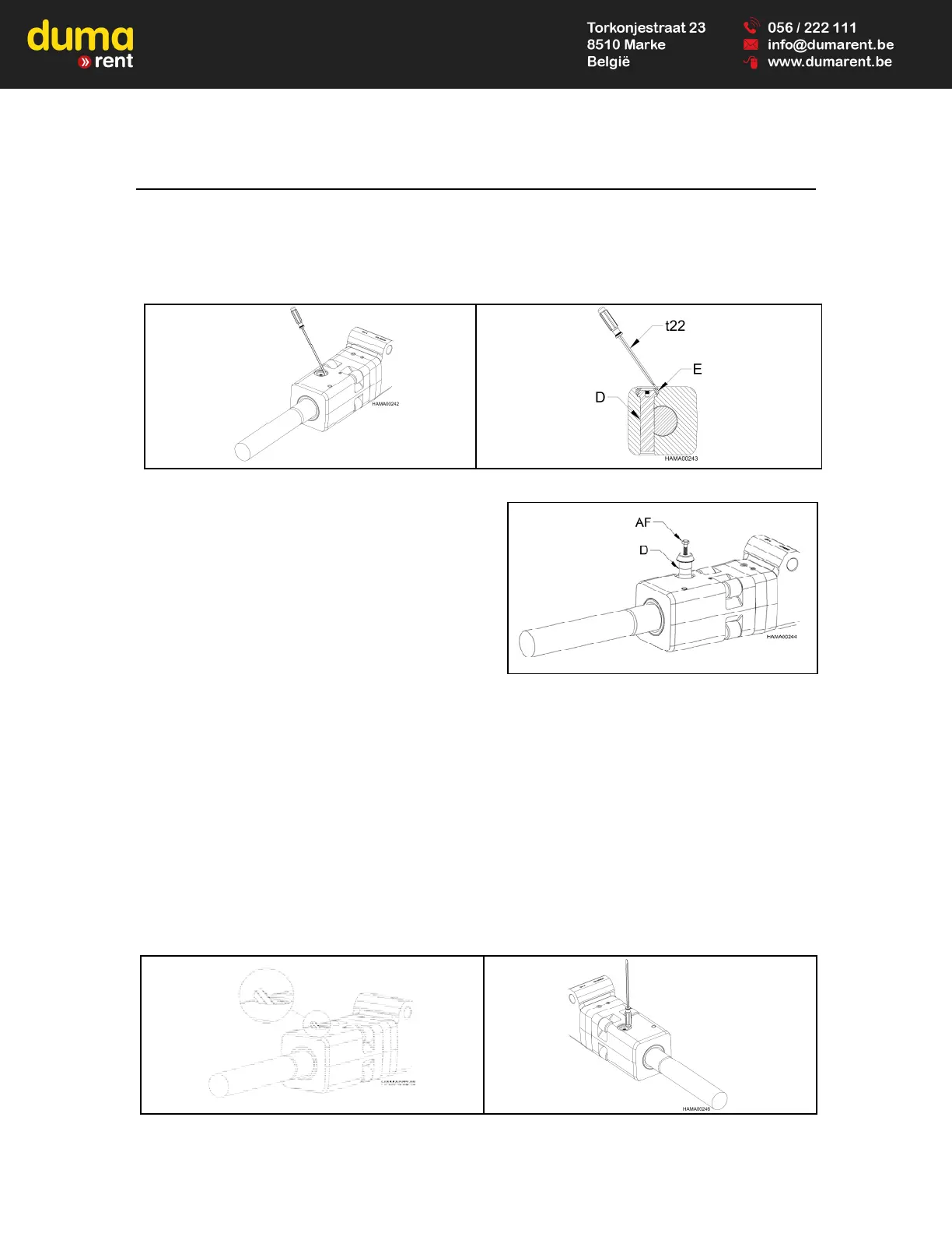 1. Remove the retaining pin ring (E) by using pliers or a screwdriver (t22), see Figures