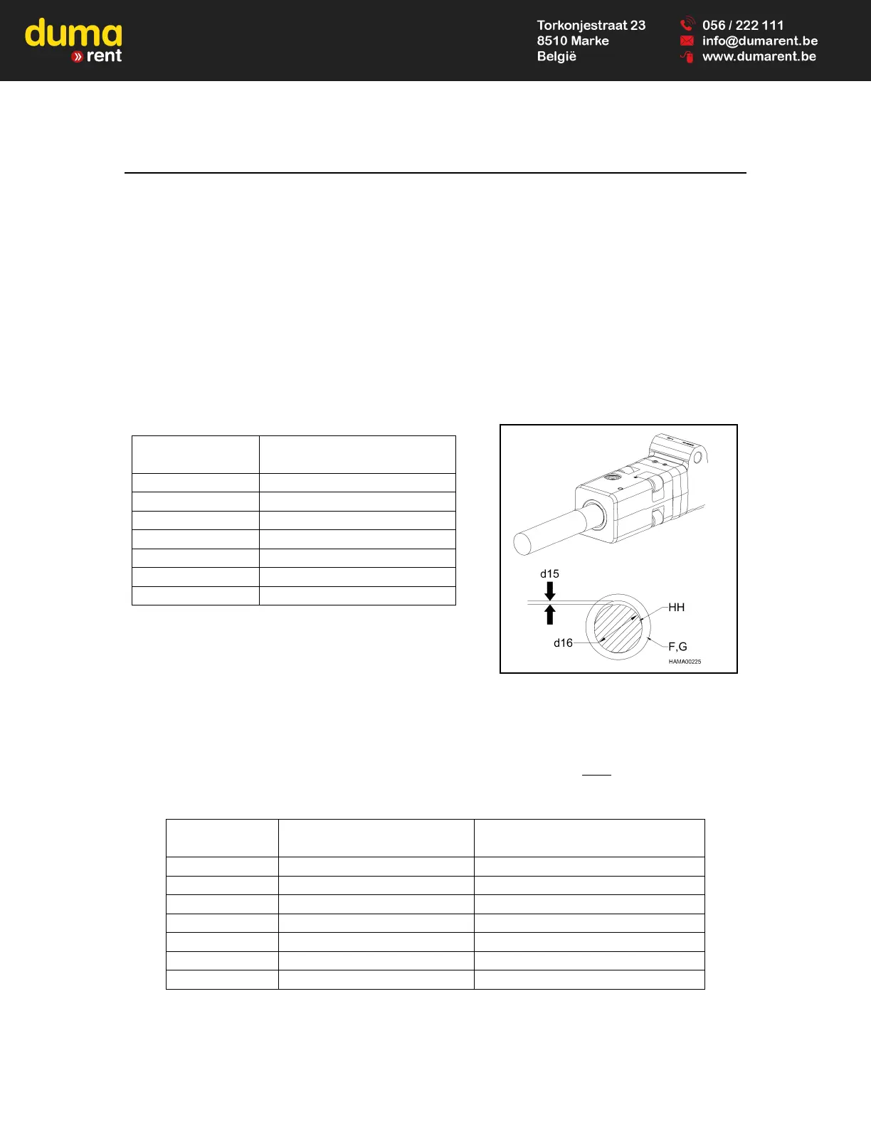 Measure the tool to bushing gap (d15) with the hammer horizontal, as illustrated below.
