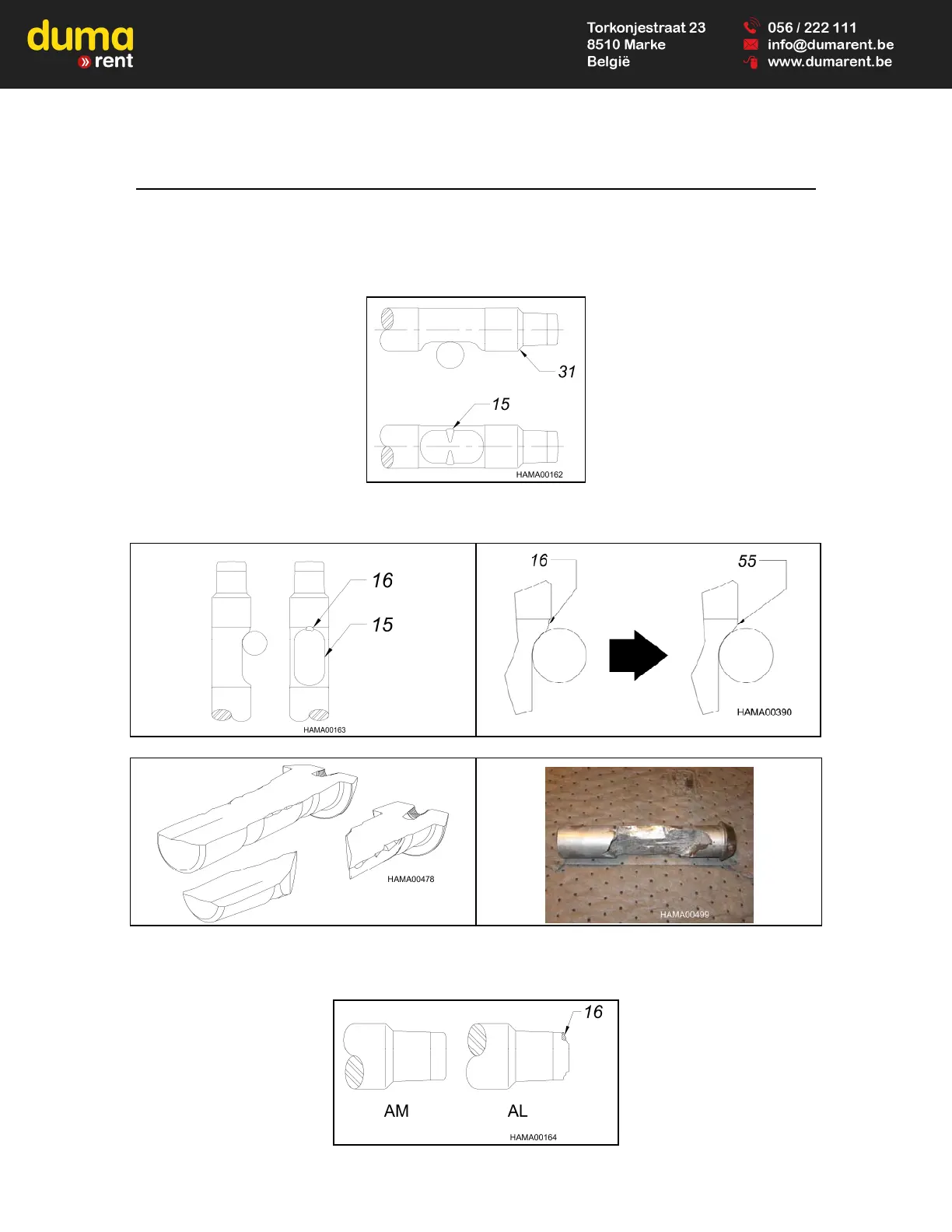 1. Deformation may occur on the tool in the retaining pin contact area (15) or thrust