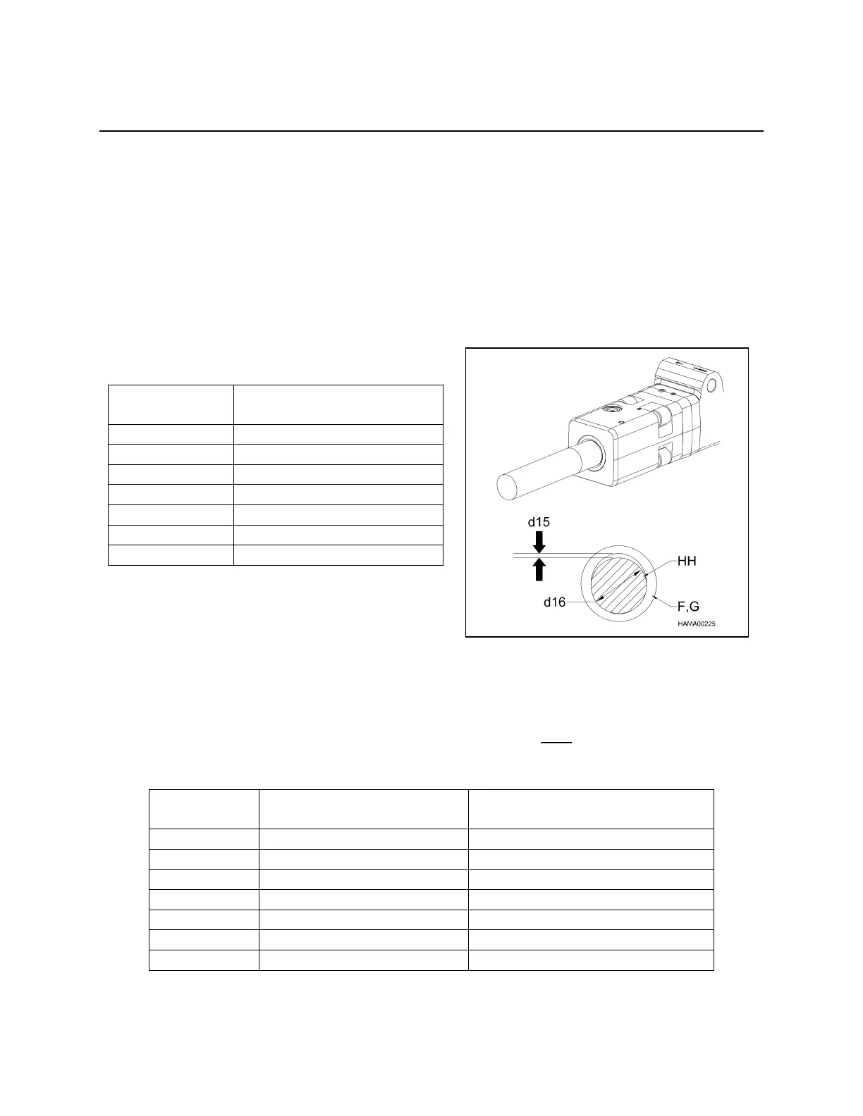 Measure the tool to bushing gap (d15) with the hammer horizontal, as illustrated below.