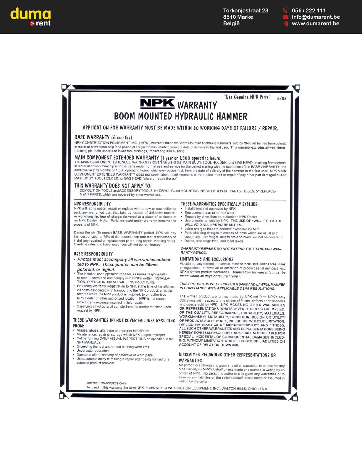 NPK GH4 - Warranty Statement; Warranty Coverage and Exclusions