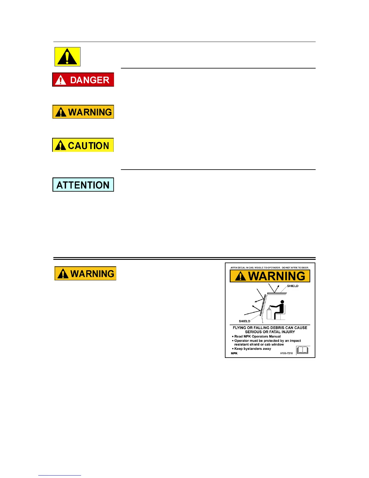 operator. NPK recommends LEXAN or equivalent material, or steel