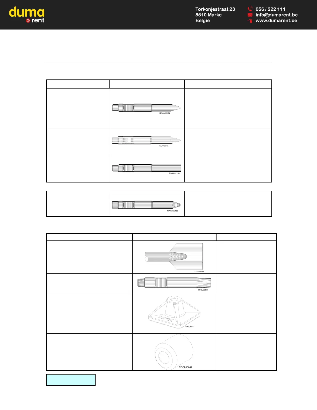 TOOLS FROM H & E SERIES HAMMERS WILL NOT FIT