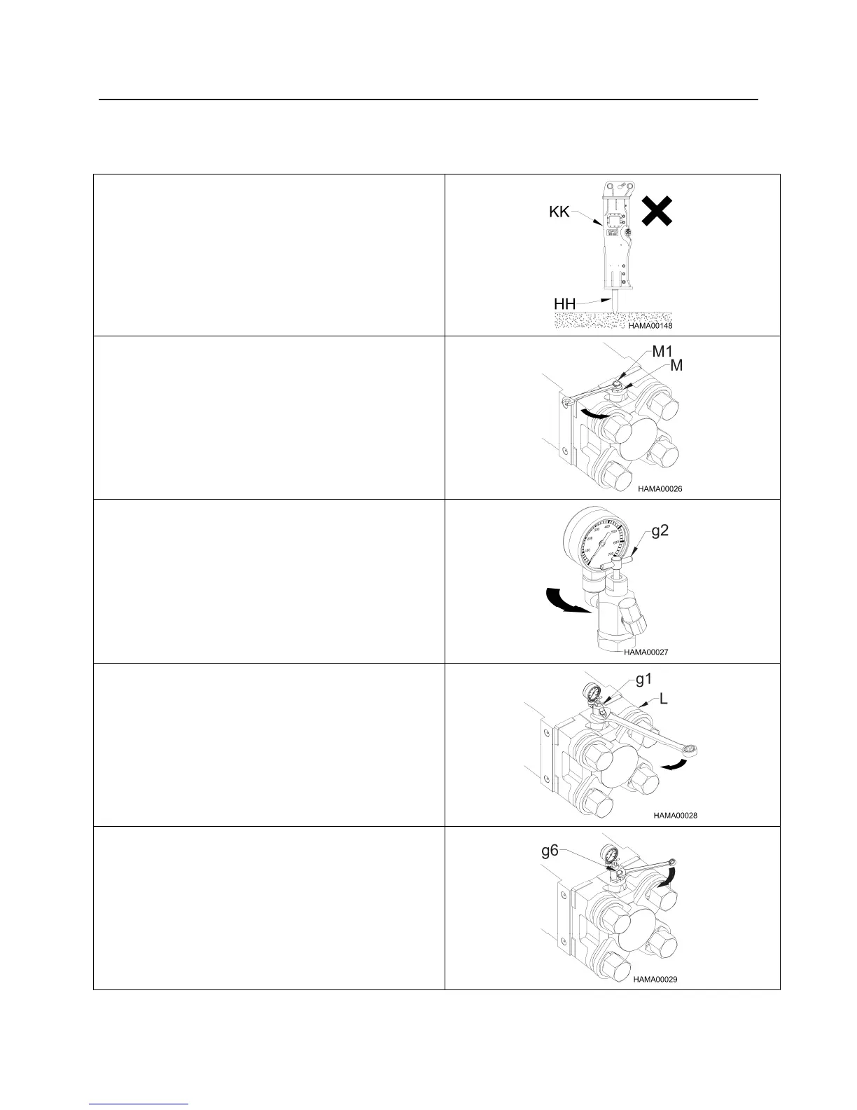 the hammer charge valve (M). Do not