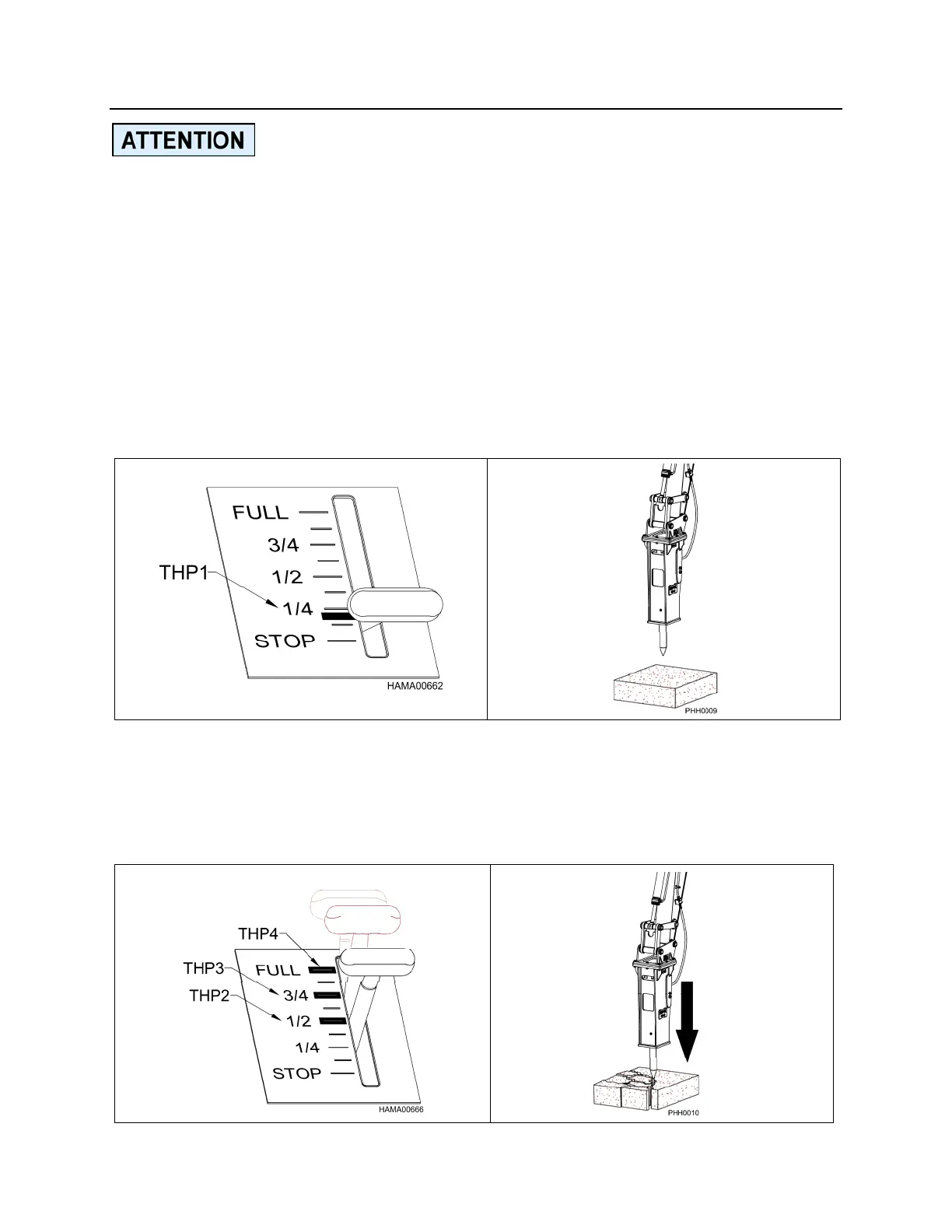2. At idle (THP1), raise the hammer off the ground. Place the hammer vertical and