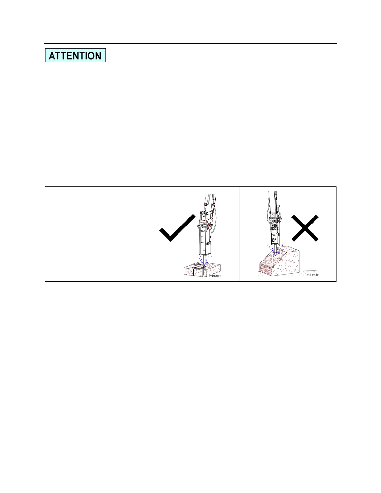 Operate the NPK HYDRAULIC HAMMER in the vertical position, at 3/4 engine throttle