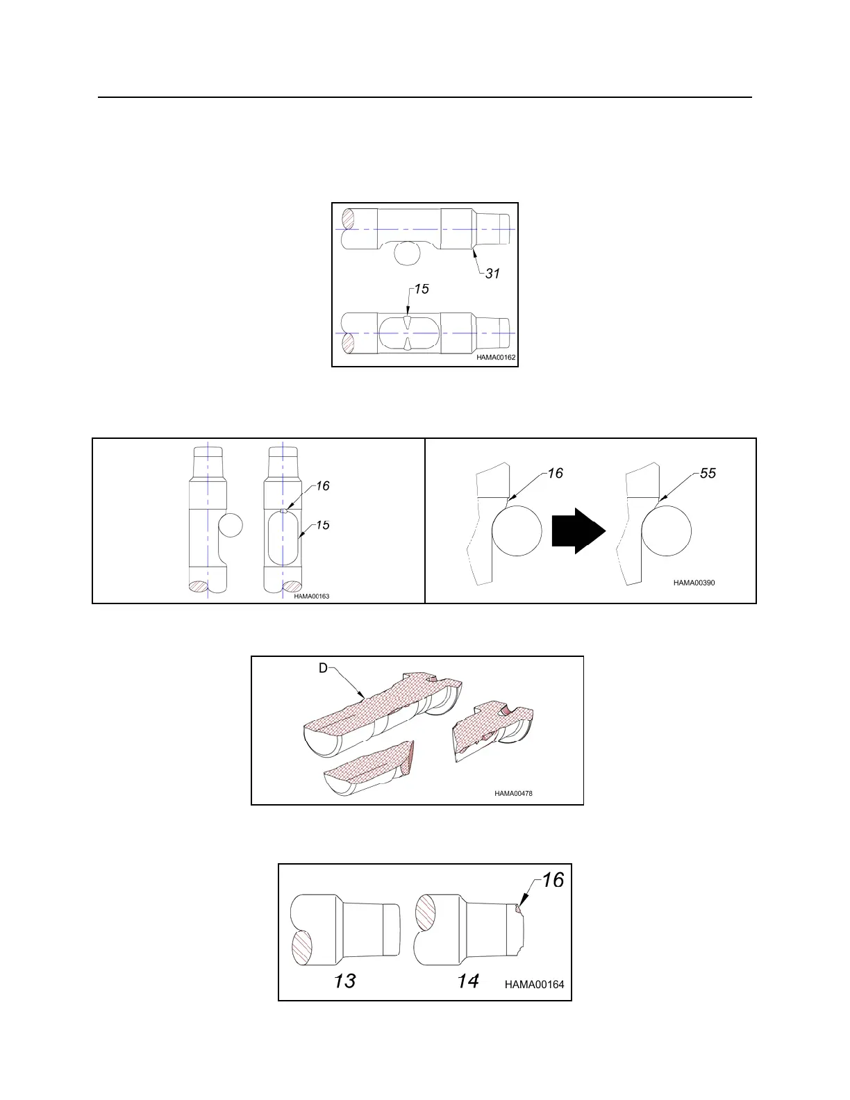 2. Excessive blank hammering will cause chipping (16) in the retaining pin contact area