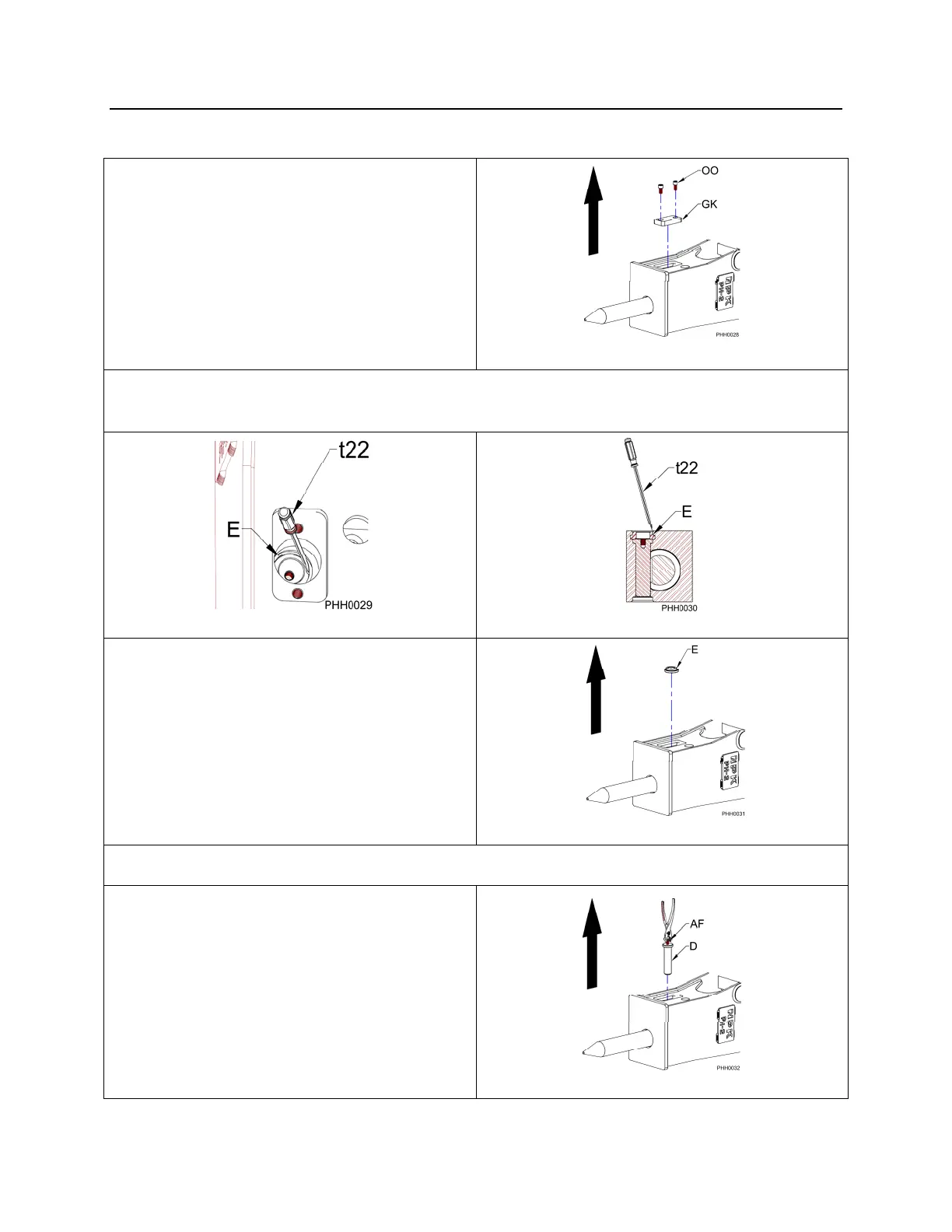 2. Remove the retaining pin ring (E) by using a screwdriver (t22), see Figures 2 and 3.
