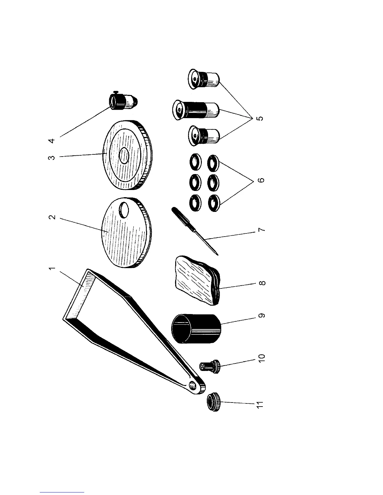 5 - eyepieces; 6 - light filters; 9 - blind; 0 - reticle;  - adapter