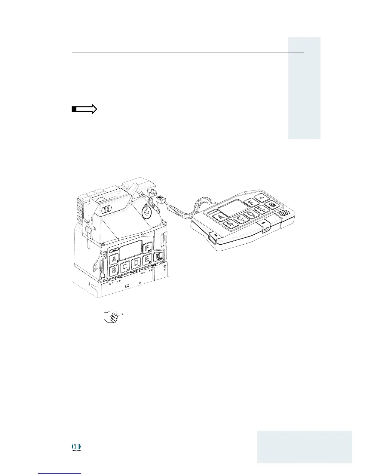 (western plug) of the connecting cable into the socket on the top right of