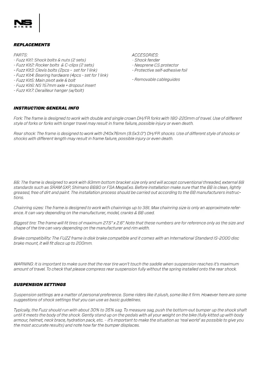 Seatpost & seatpost clamp: The FUZZ frame works with 30.9mm seatposts and 34.9mm seatpost clamps. Do not extend the