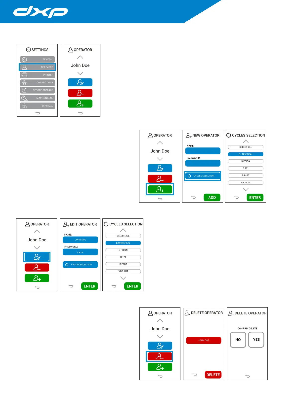 menu. In this menu it is possible delete an existing operator.