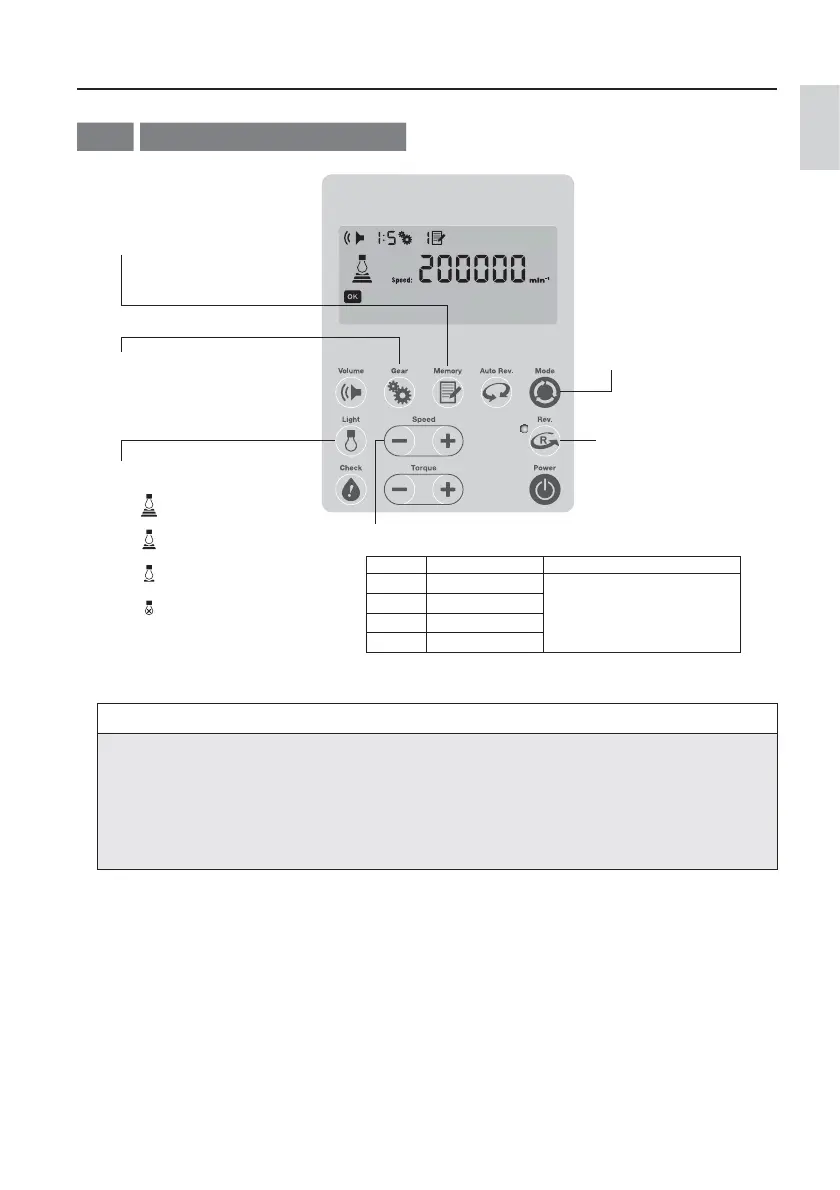 ŘThe rotation speed of the bur, mounted to the handpiece, depends on the gear ratio of the handpiece.