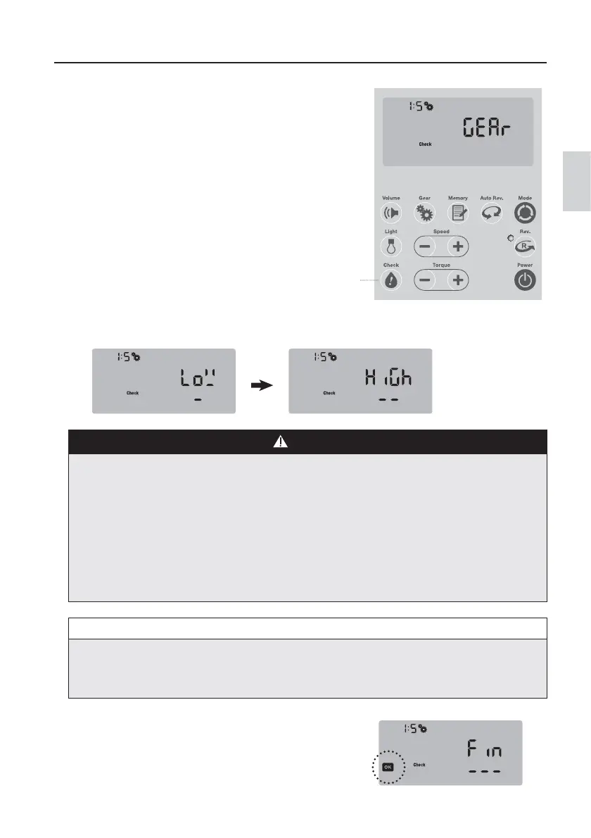 Le moteur démarre automatiquement à basse vitesse, puis se met à accélérer jusqu’à haute vitesse afin d’évaluer