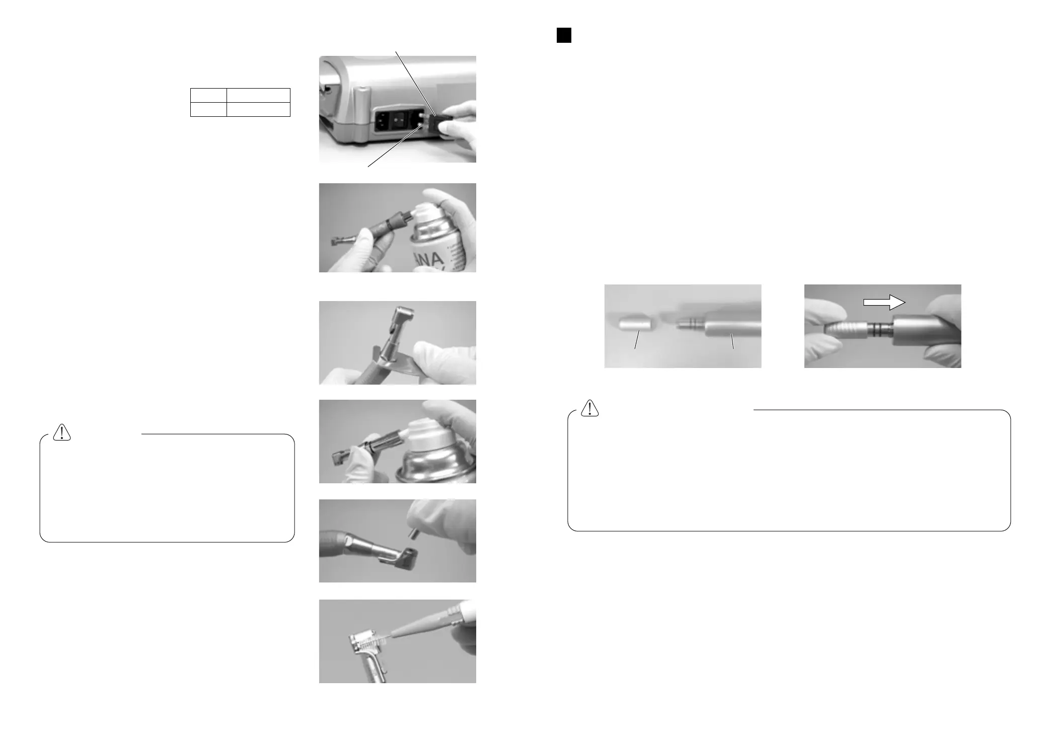 s Clean inside the handpiece, by using the spray lubricant (refer to "7. Care and Maintenance").