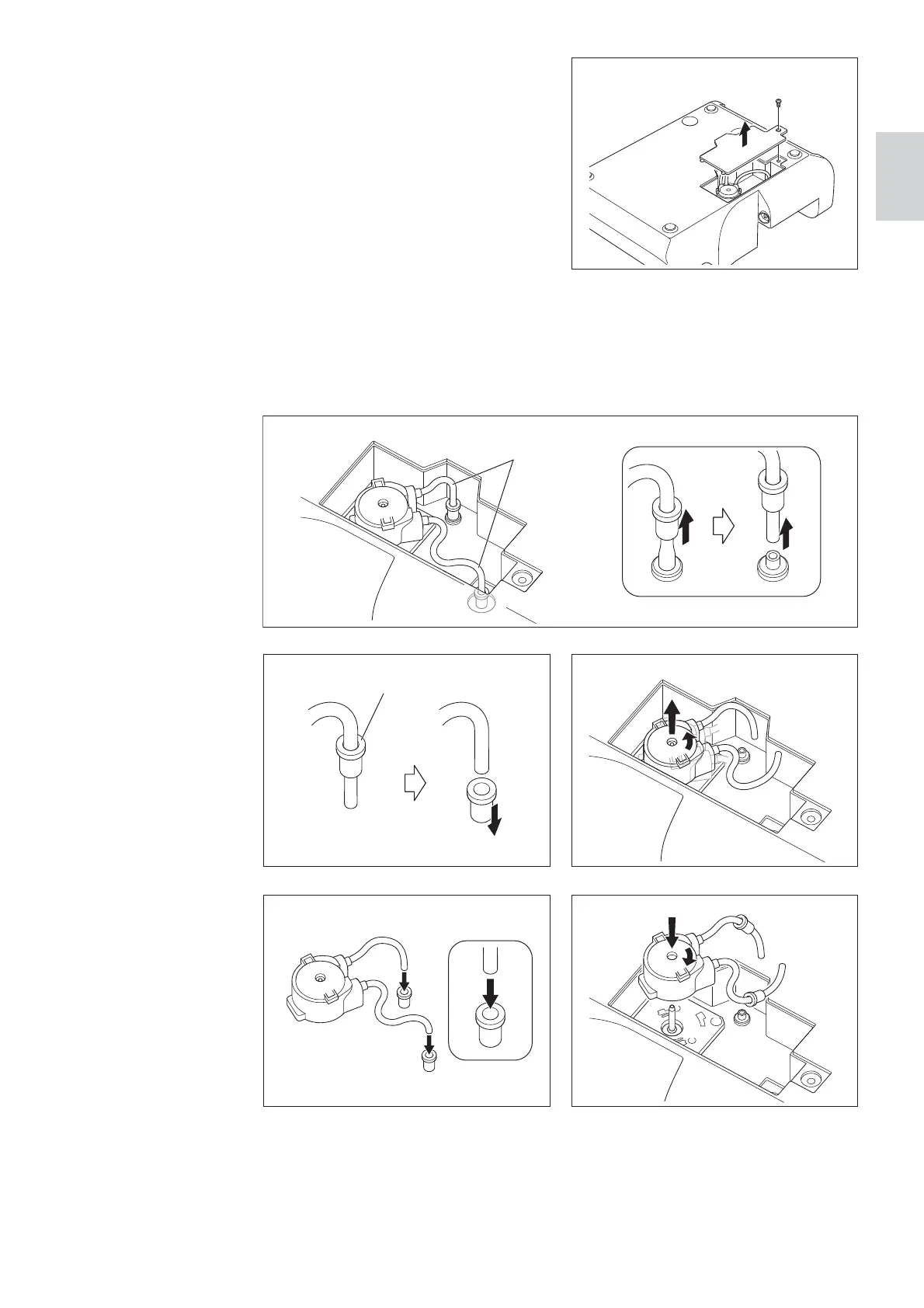 8) Mount the Irrigation Tube by following the removal procedure in reverse. Press the
