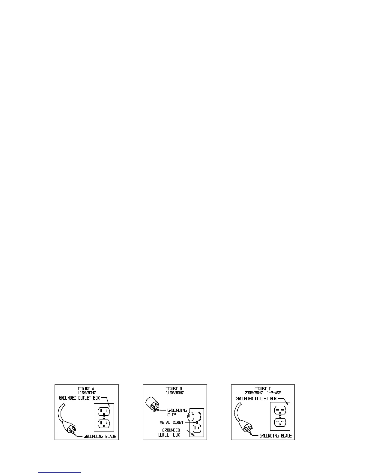 grounding conductor and grounding plug. The plug must be plugged into an appropriate outlet that is properly installed