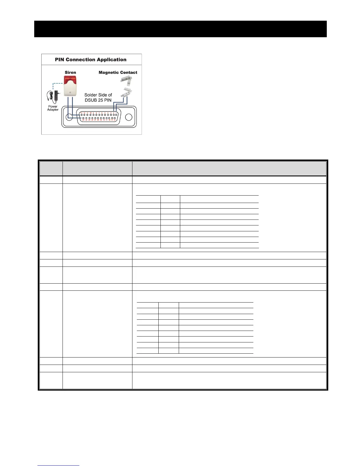 Connect ALARM INPUT (PIN 15 – 22) and GND (PIN 1) connector with wires. Once an