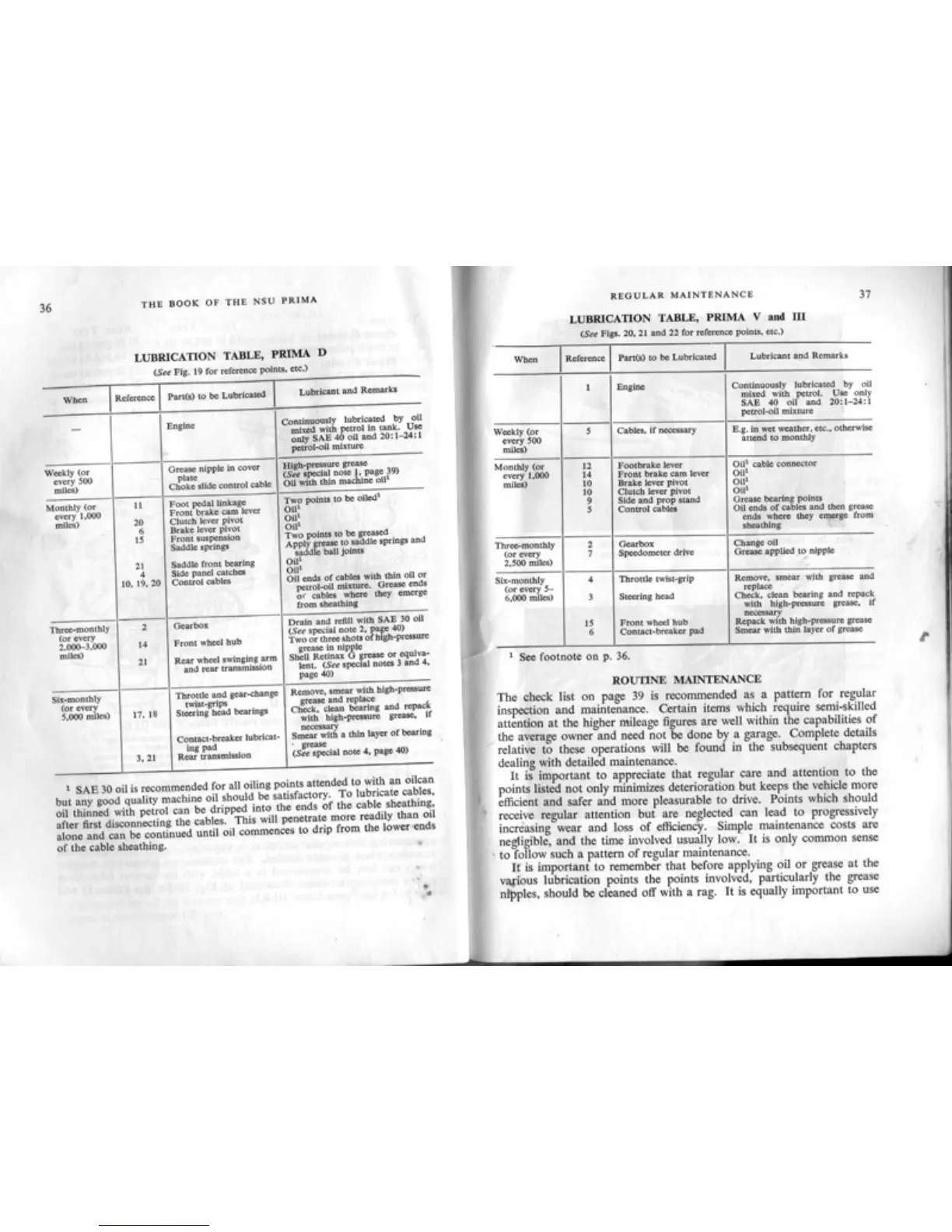 NSU Prima - Lubrication Schedule