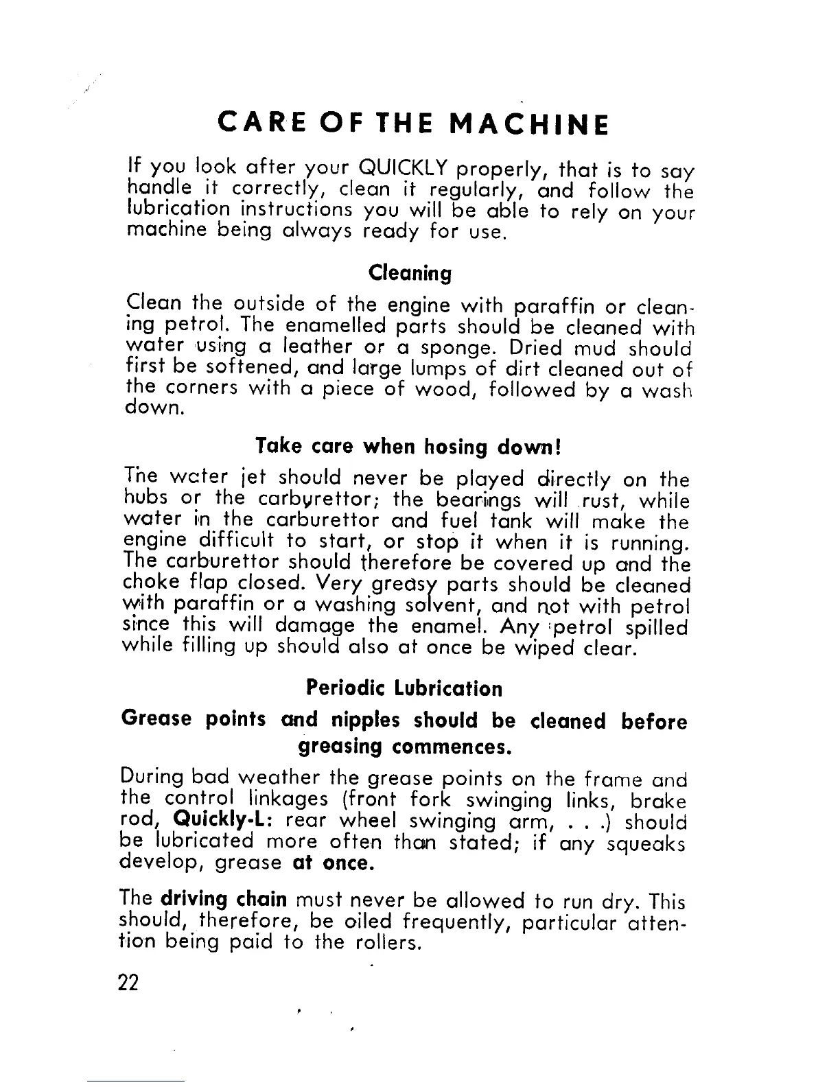 NSU Quickly Normal - Machine Care and Maintenance; Cleaning Procedures; Periodic Lubrication Schedule