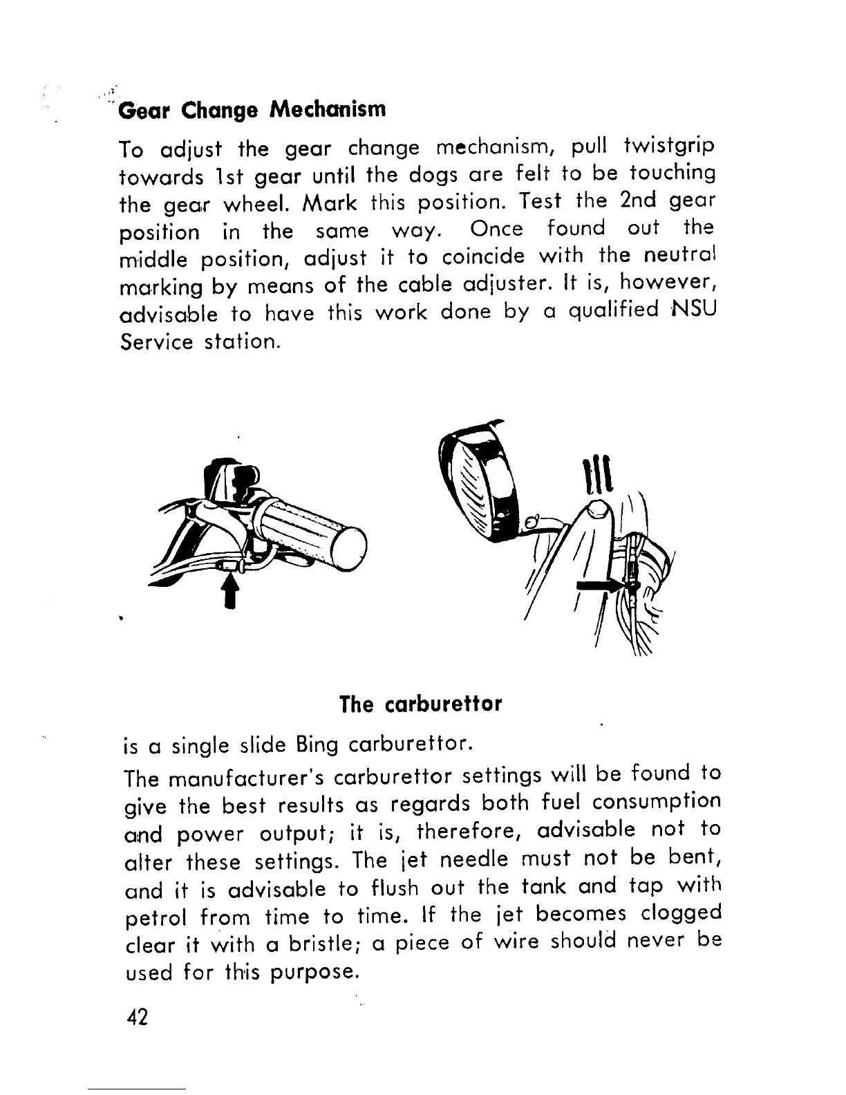 NSU Quickly Normal - Gear Change and Carburettor Adjustments