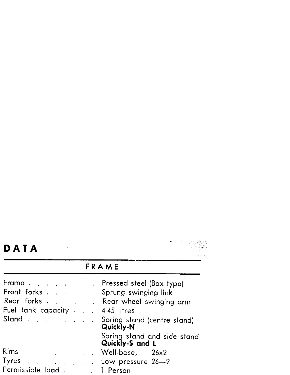 NSU Quickly Normal - Vehicle Data; Frame and Fuel Tank Specifications