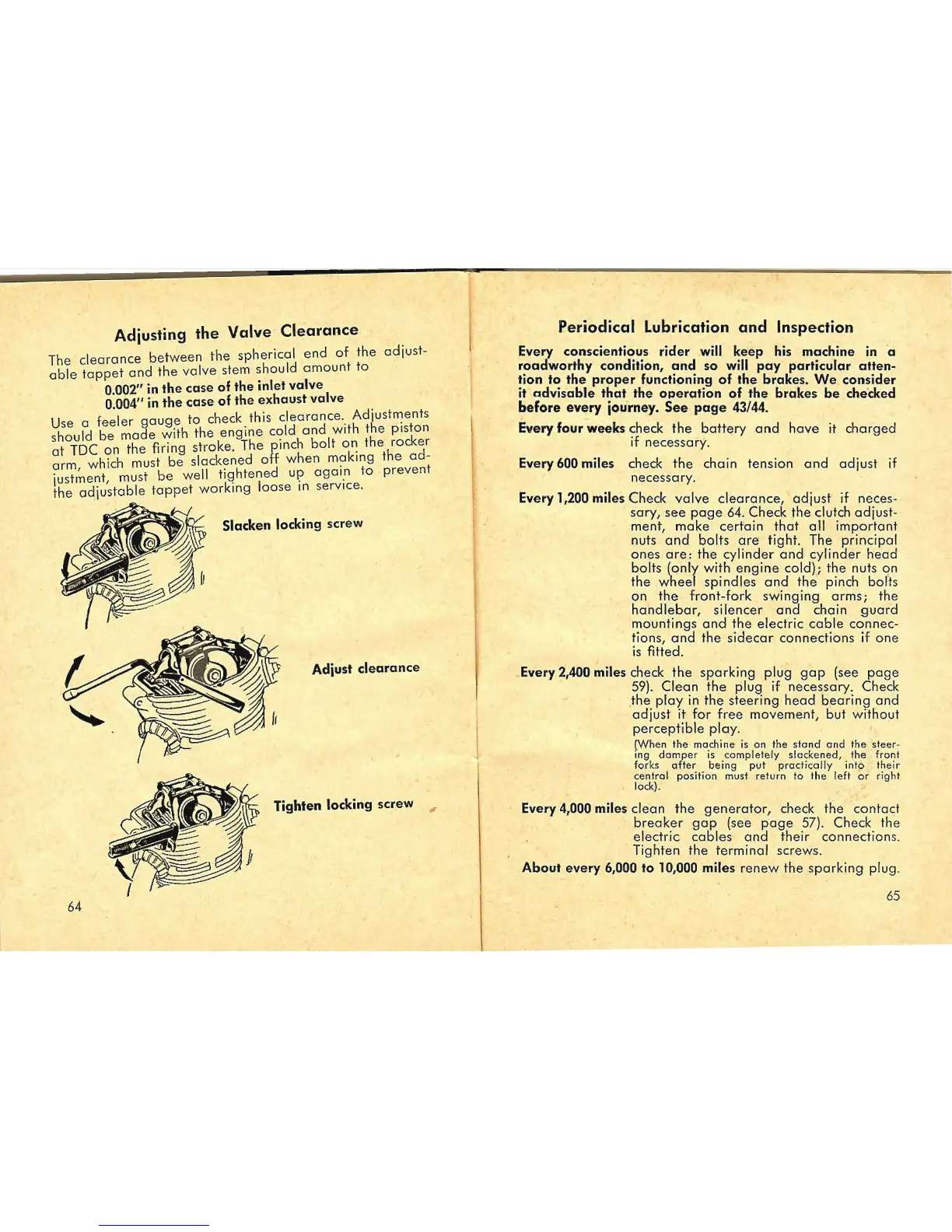 NSU Supermax - Specific Adjustments and Preparations; Valve Clearance Adjustment; Periodical Inspections and Lubricants