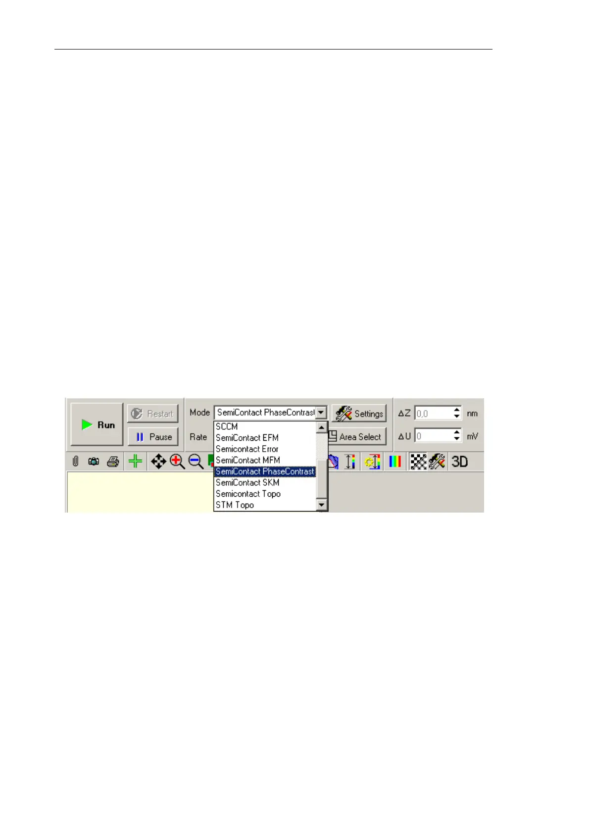 Select the mode SemiContact Phase Contrast from the list Mode (scan mode list) of the