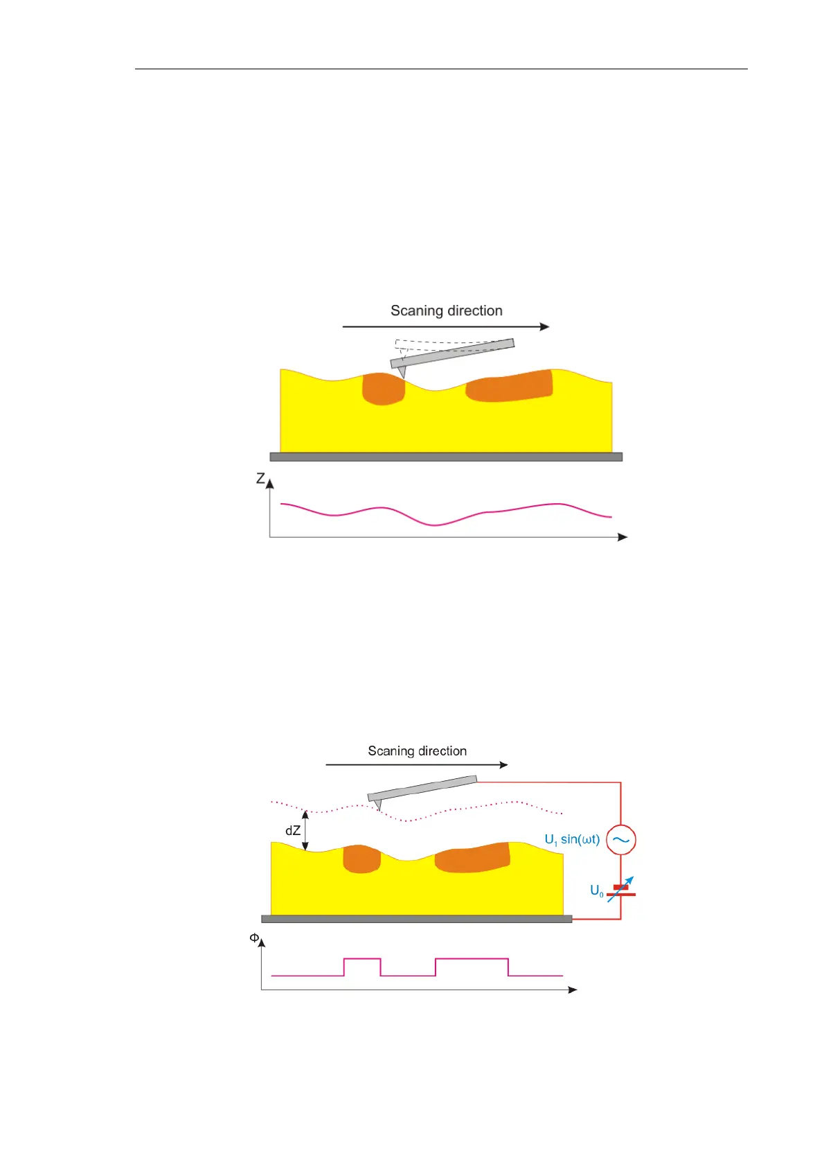 Then, the probe is lifted above the surface to the height dZ. An ac voltage U