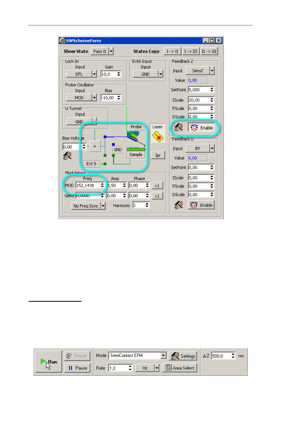 procedures: the sample is approached to the probe, setting of the operation point is done,