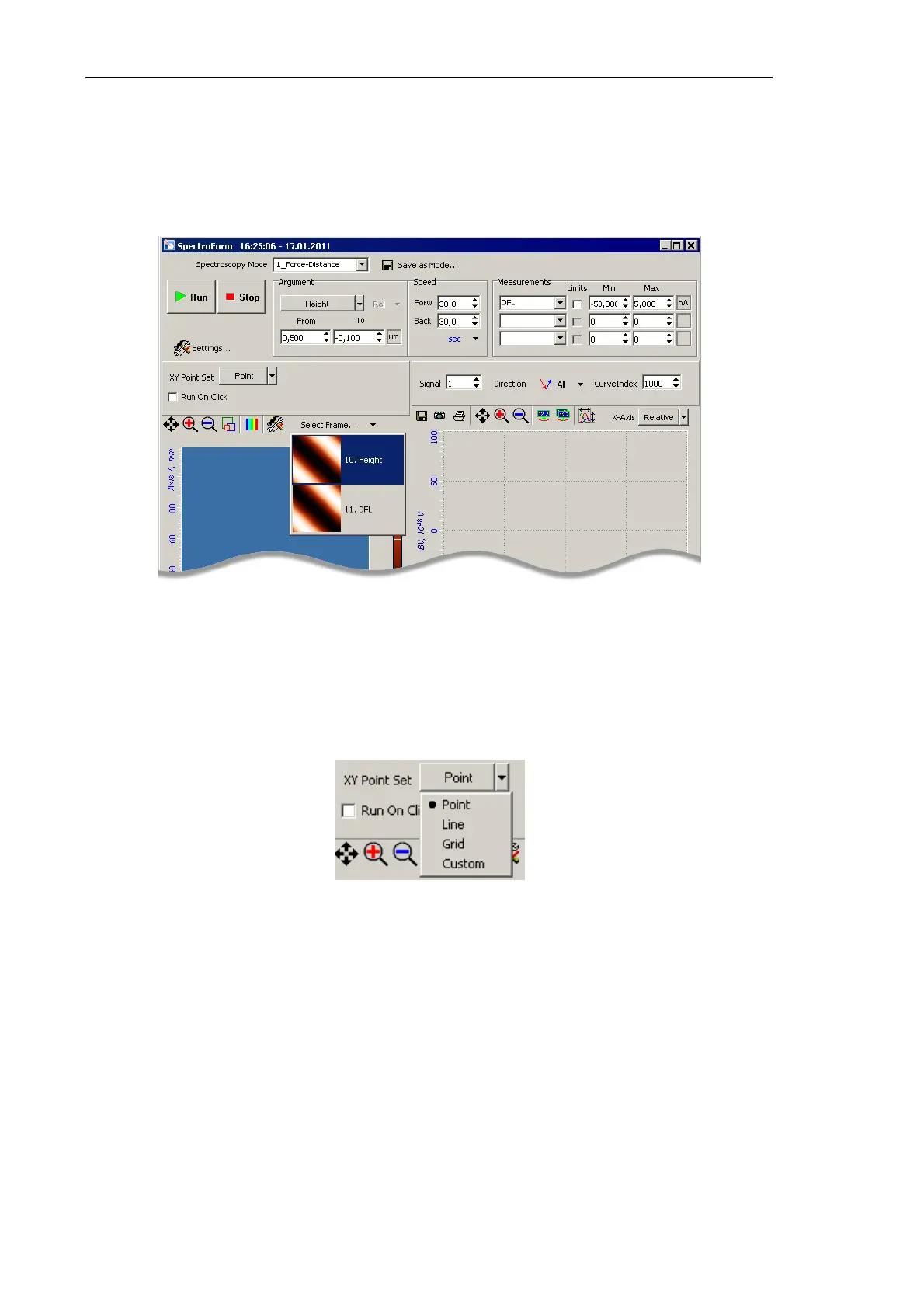 Point – spectroscopy will be taken at a particular point. This point is selected by clicking