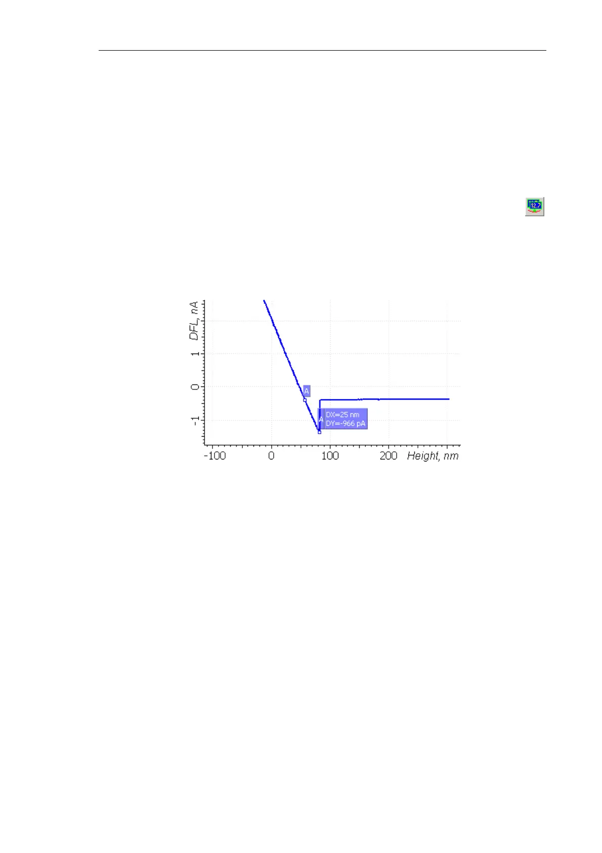 The values of DX and DY measured with the markers are Δ Height and Δ DFL, respectively.