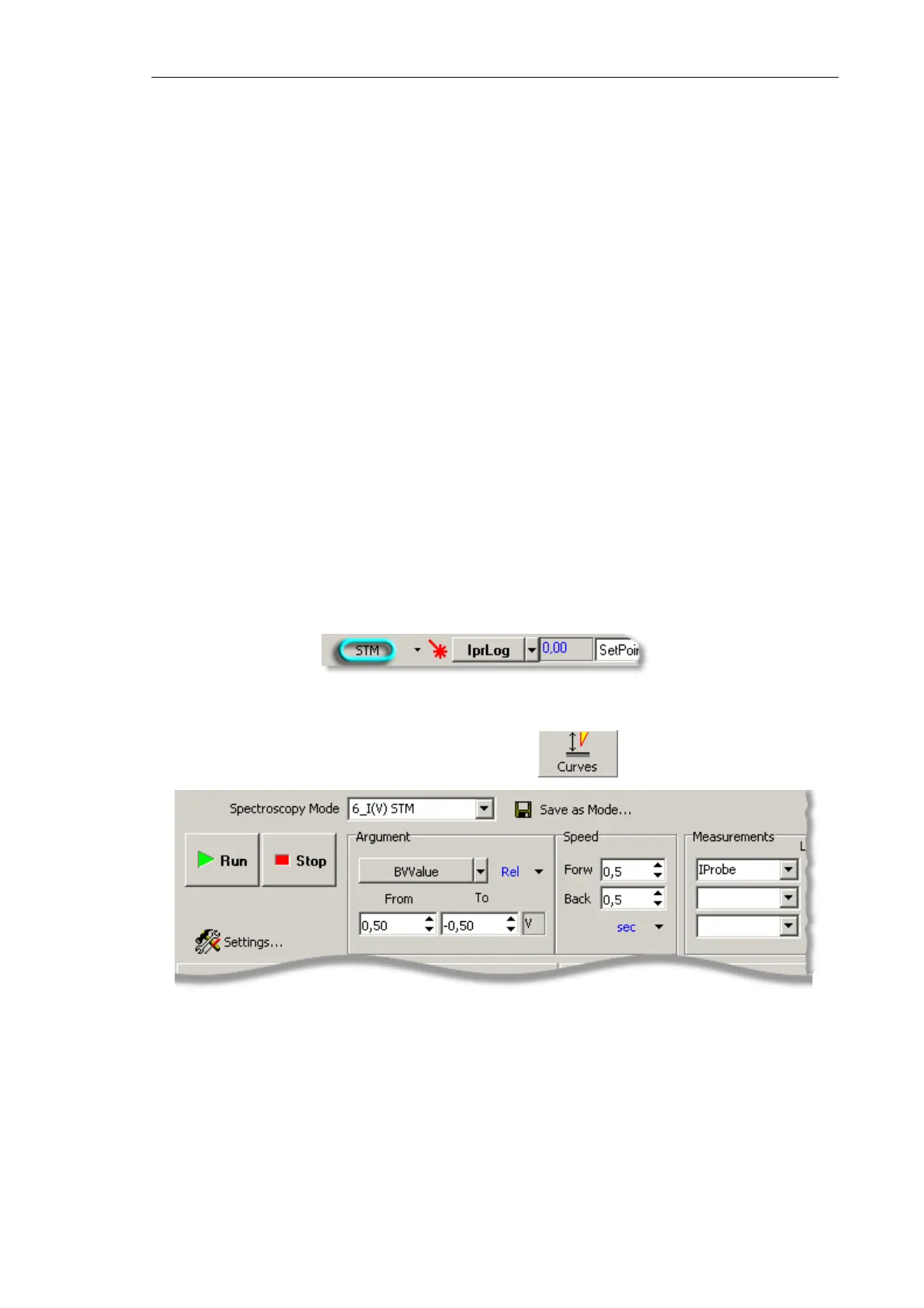 3. In the Spectroscopy Mode drop-down list, select I(V) STM. This will result in: