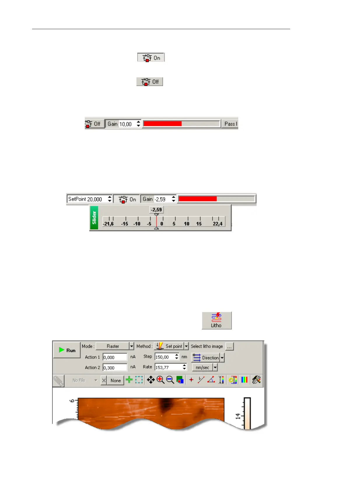 3. Adjust the working level of the feedback gain (Gain parameter) as follows: