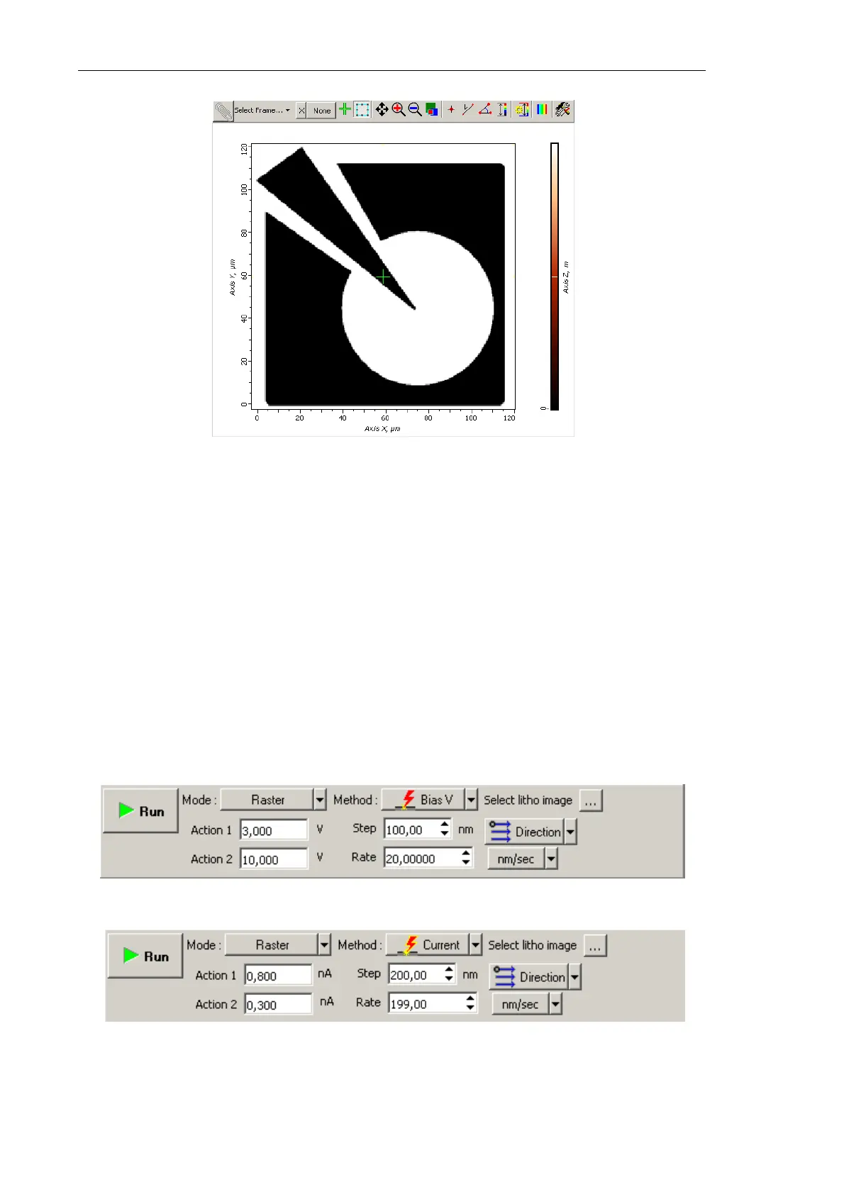 2. In the Lithography Control panel, define the range of varying the force applied to the
