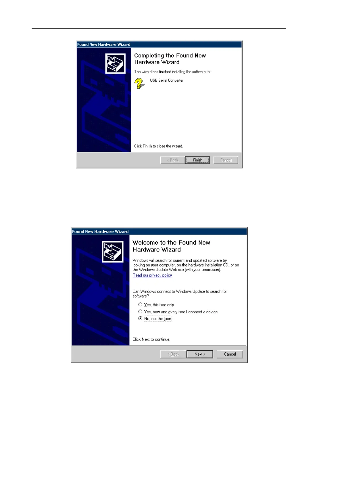 a) Skip the Windows Update option in the Found New Hardware Wizard dialog by