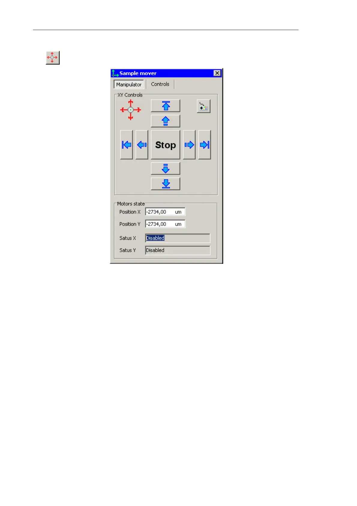 Fig. 6-47. Control window of the sample movement stepper motors