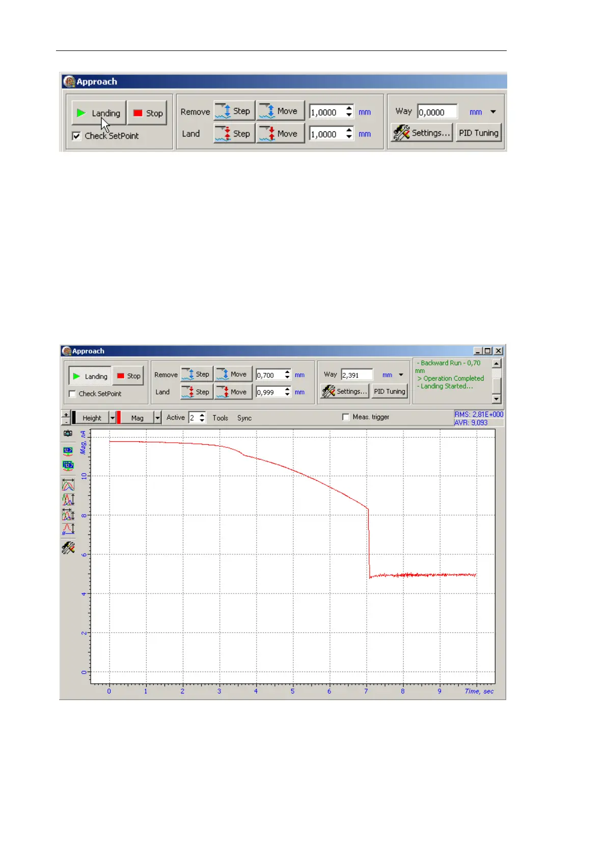 Providing the approach parameters are set correctly, the approach procedure completes in