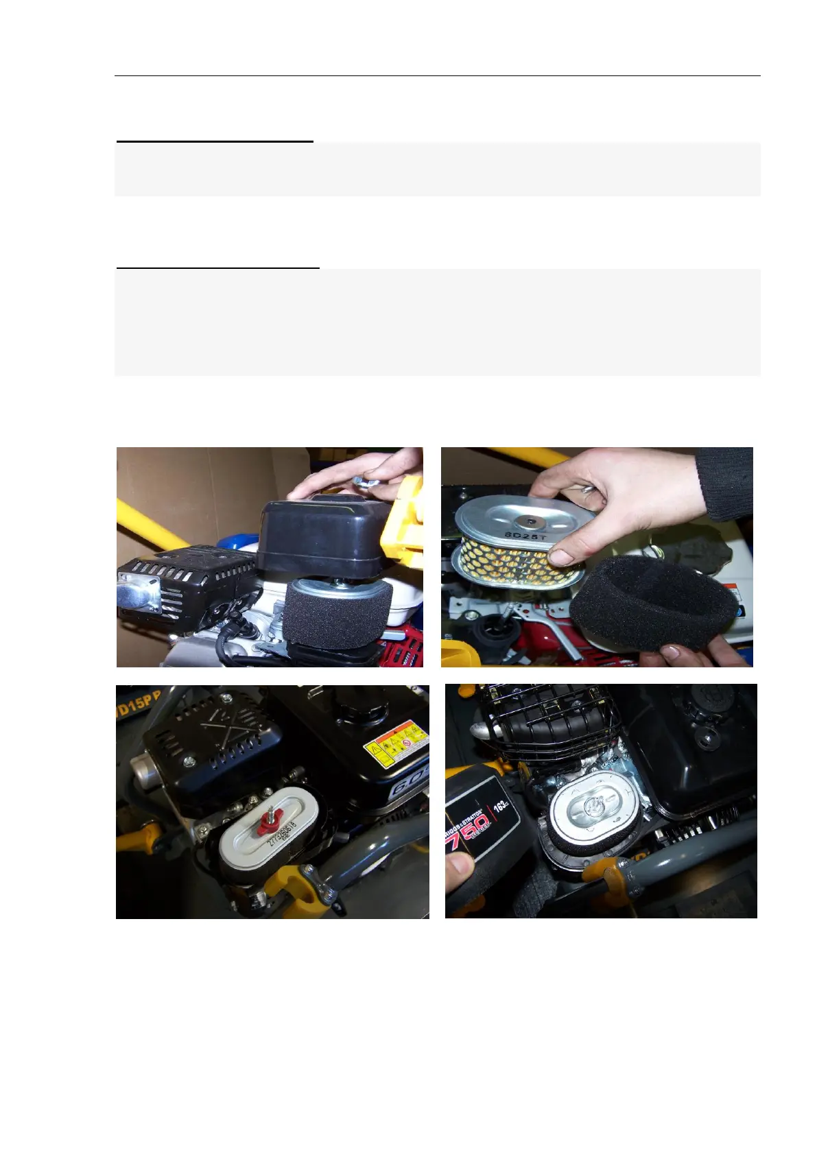 Never operate the engine without the filter or with a damaged one. Dirt and dust entering the