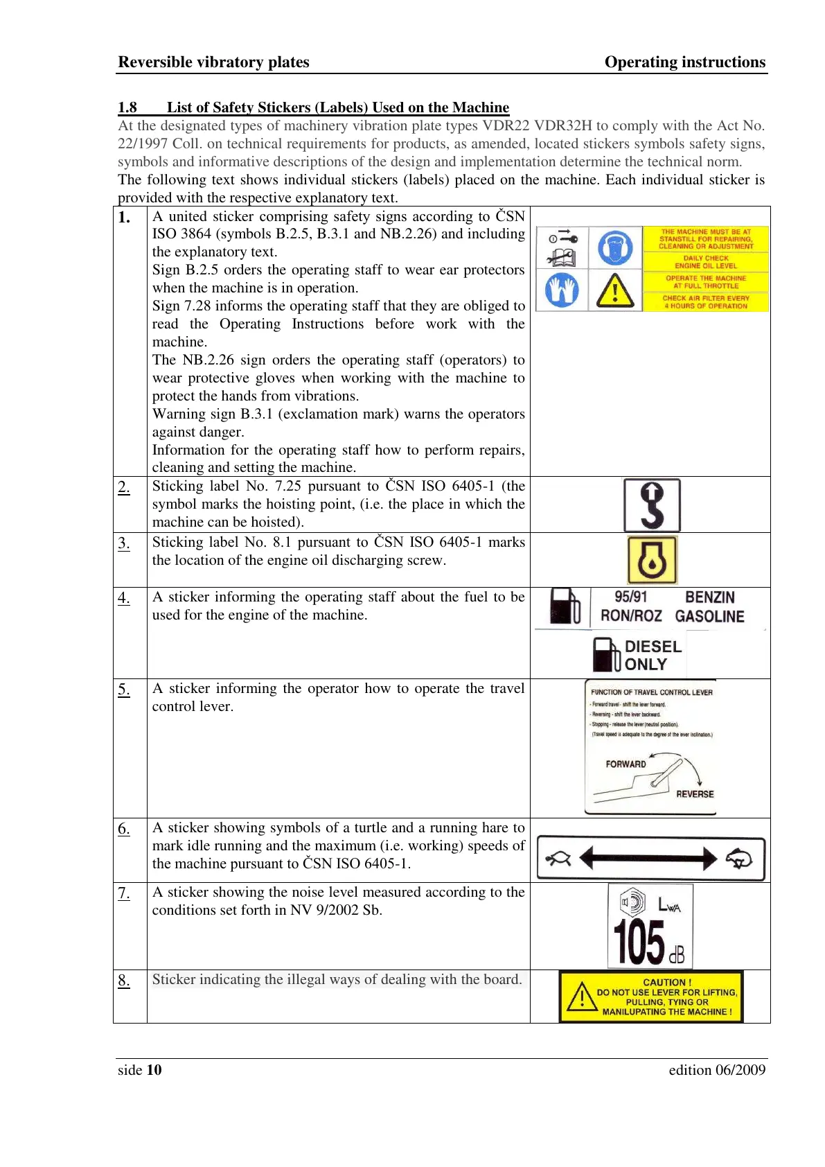At the designated types of machinery vibration plate types VDR22 VDR32H to comply with the Act No.