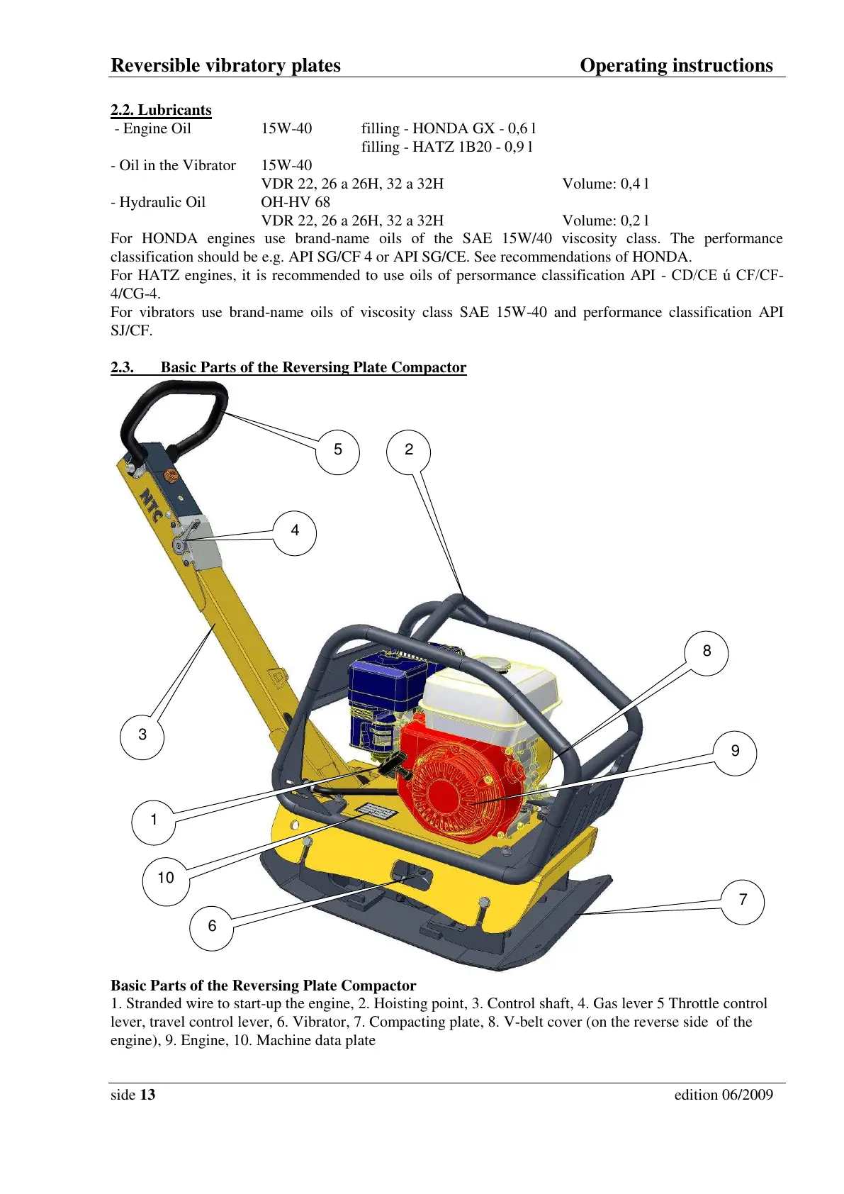 engine), 9. Engine, 10. Machine data plate