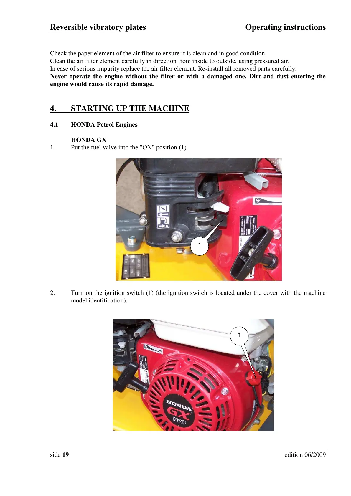 Never operate the engine without the filter or with a damaged one. Dirt and dust entering the