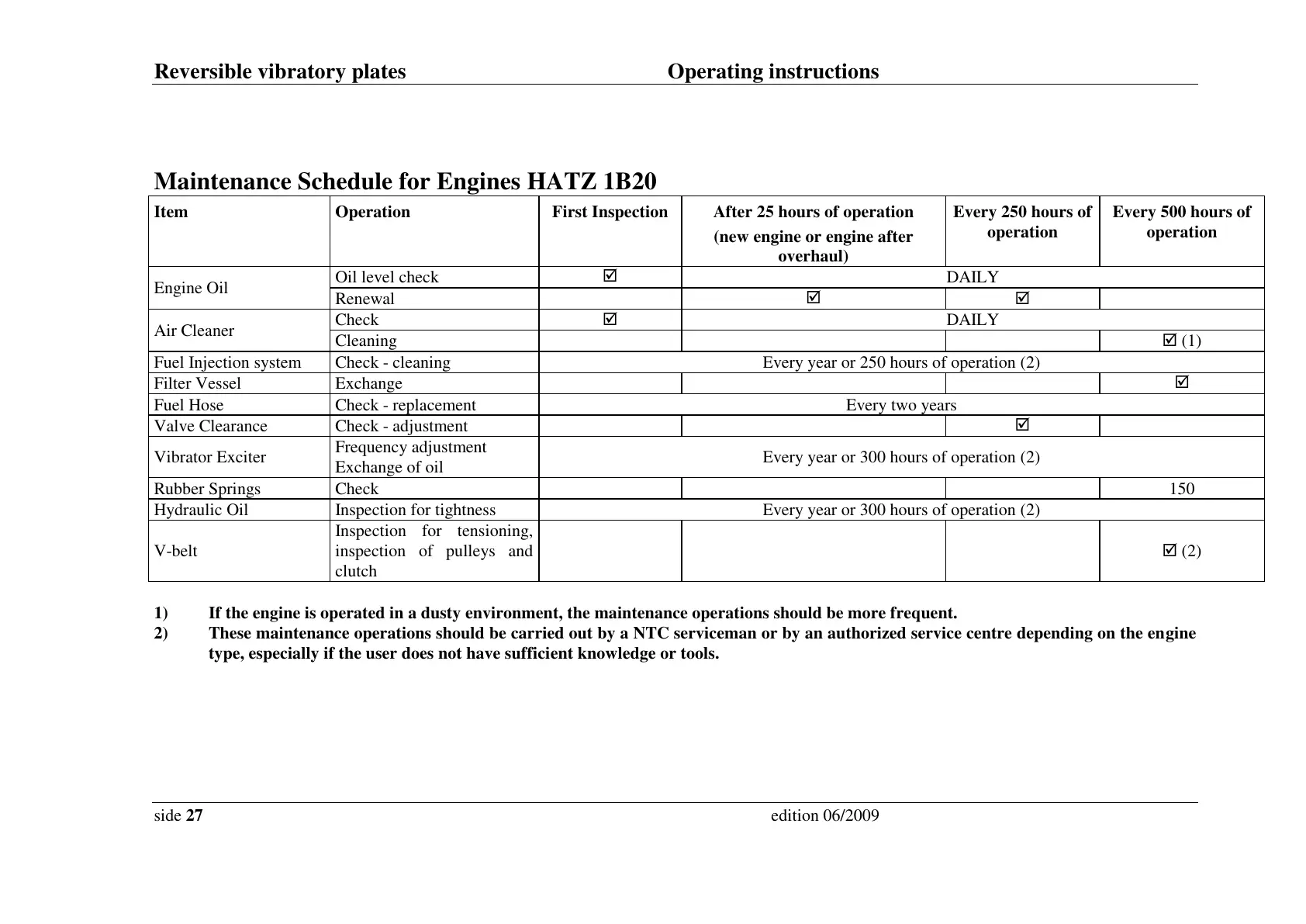 Maintenance Schedule for Engines HATZ 1B20