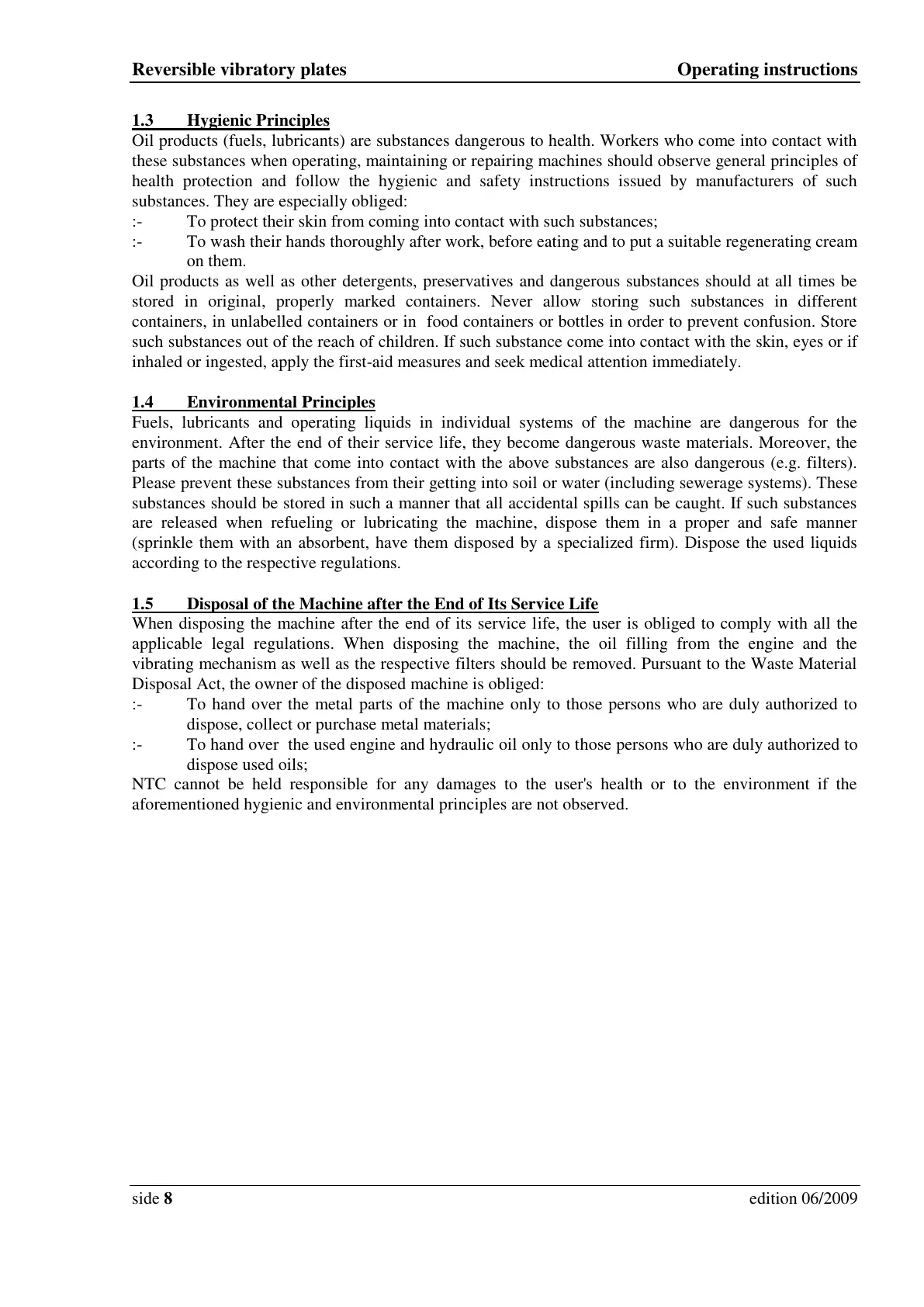 applicable legal regulations. When disposing the machine, the oil filling from the engine and the