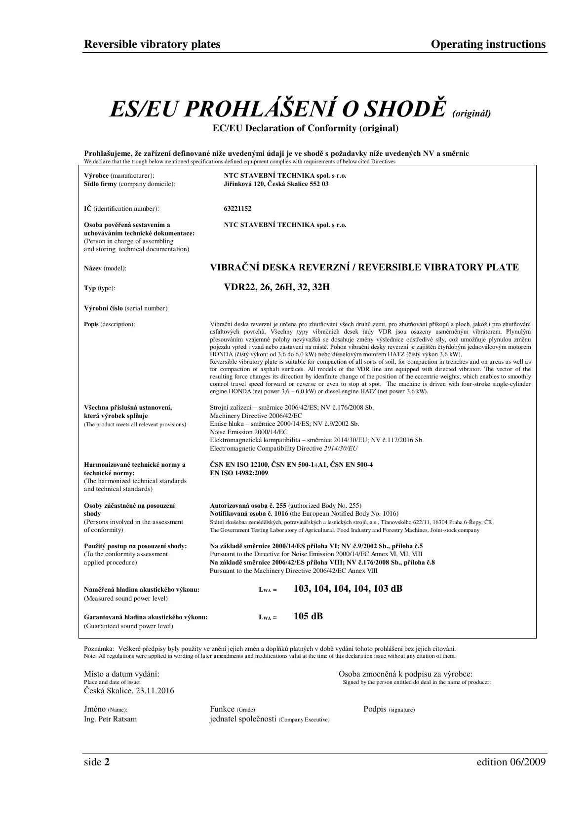 Výrobce (manufacturer): NTC STAVEBNÍ TECHNIKA spol. s r.o.